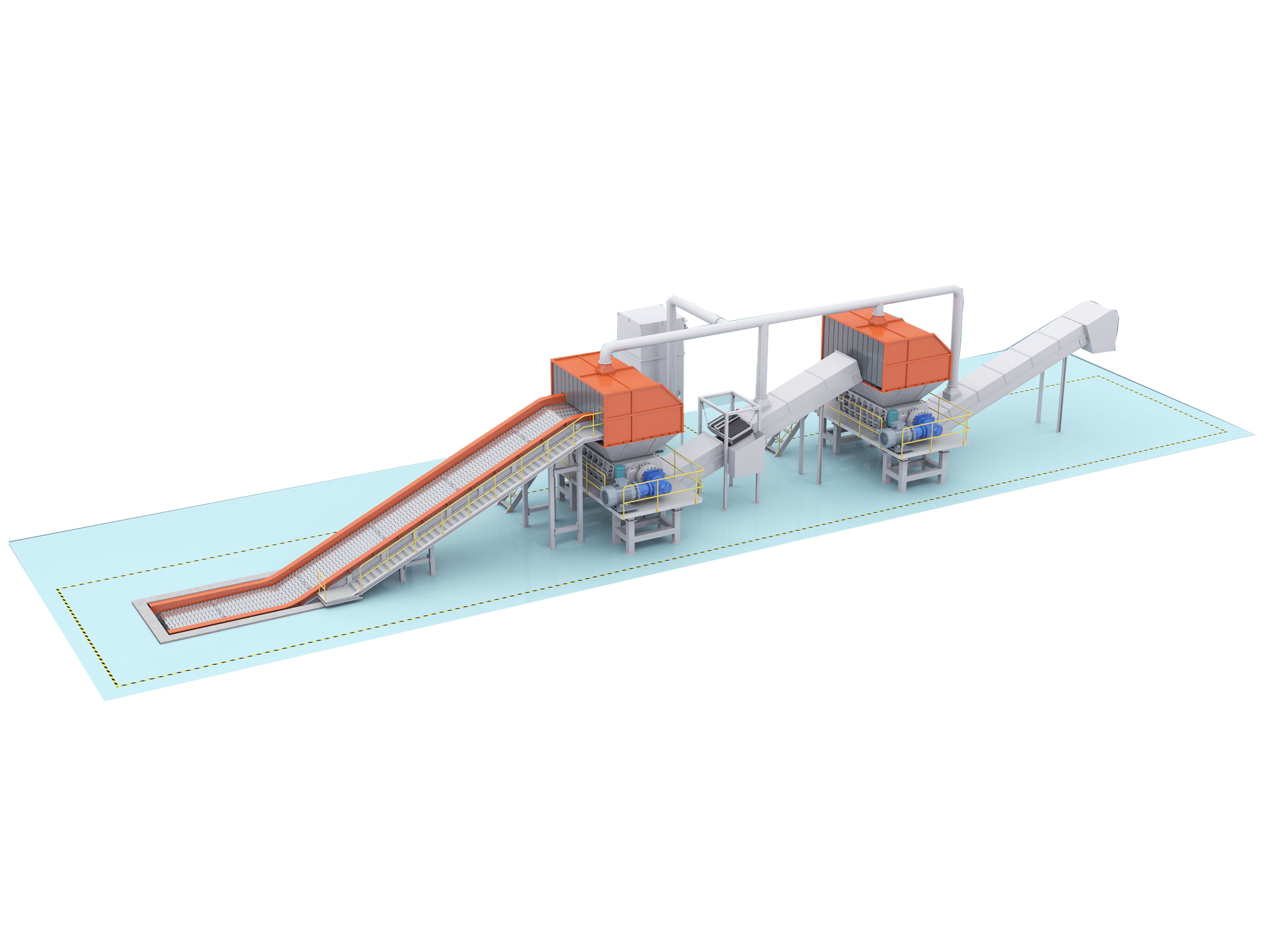 このダブル シェーリング シェラダー に は スクリーン ユニット が あり ませ ん.材料 が トッパー に 入っ た 後,材料 は 2 つの 対 回転 刃 を 用い て 処理 さ れ,直 に 放出 さ れ ます.